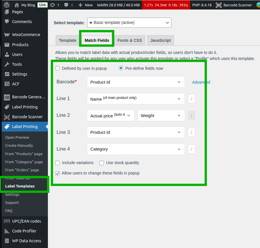 - Custom Fields support added. Now you can use any custom field to create barcode.
